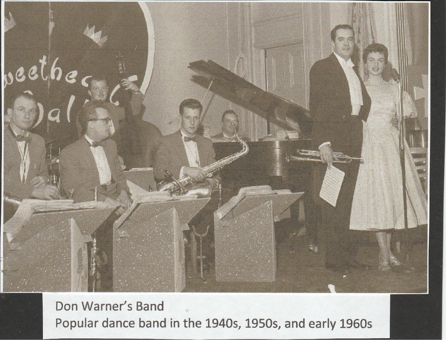 The Don Warner Band played at this upscale dance hall one night a week, singing with the band were two popular girl singers; Grace Boutilier and Doreen Hanrahan who always wore beautiful gowns. There were no liquor licenses at that time and people brought their own liquor. The drinks were kept in brown paper bags on the floor by their feet, because liquor was not allowed to be seen on the table.