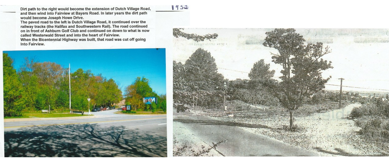 Dutch Village Road The road’s name derives from the first settlers who were mostly “deutsch” being the German word for “German.” The original road ran from the Northwest Arm to the Bedford Basin. The road started out as just a path way that subsequently became a rough cart trail. The road from the Arm Bridge to the Dutch Village (Fairview) does not appear to have been regularly constructed until 1832. Around 1887, this thoroughfare was straightened, paved and called Dutch Village Road. Today only a small portion of the road is still called Dutch Village Road and that part is in Fairview which was once the heart of the little Dutch Village. The part of the road that was formerly called Dutch Village Road at the Northwest Arm is now called Joseph Howe Drive and this road continues down to the Fairview Overpass.