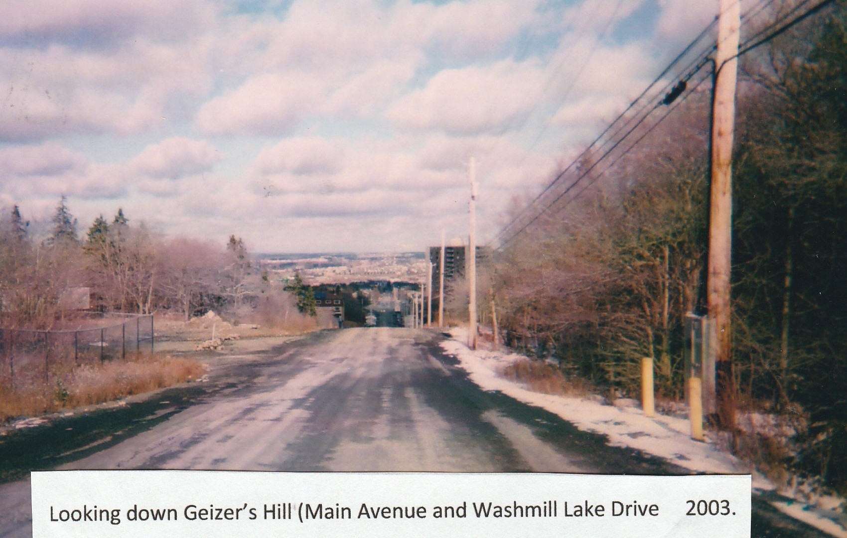 Main Avenue Once known as the Duke of Kent Street. Further up the road it was called Geizer’s Mountain or Geizer’s Hill. It also had the nic-name of Lightning Hill because in the winter, the children from the area would sleigh down the hill as quick as lightning. Today the top of Main Avenue is now extended and is called Washmill Lake Drive.