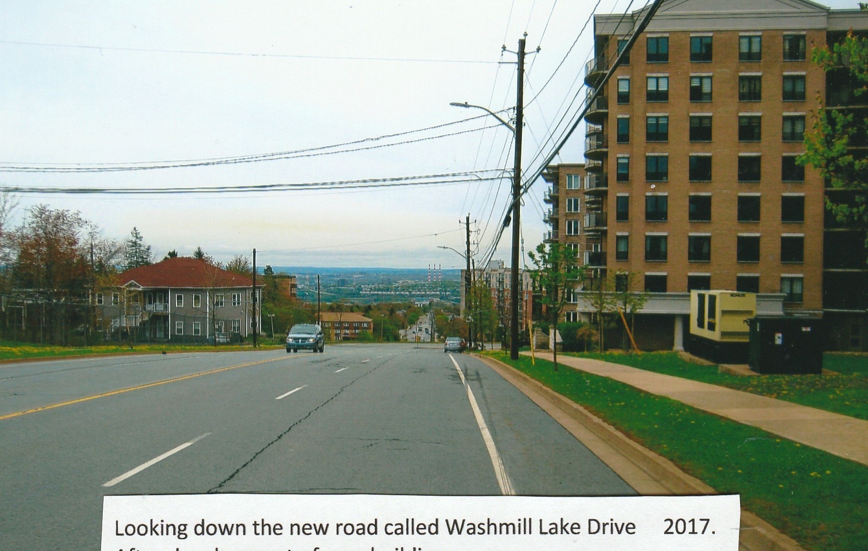 Washmill Lake Drive It is a new road that starts at the top of Main Avenue (Geizer’s Hill) and goes into Bayers Lake Park. Probably named after Washmill Pond, which is another name for Deal’s Pond in Fairview.