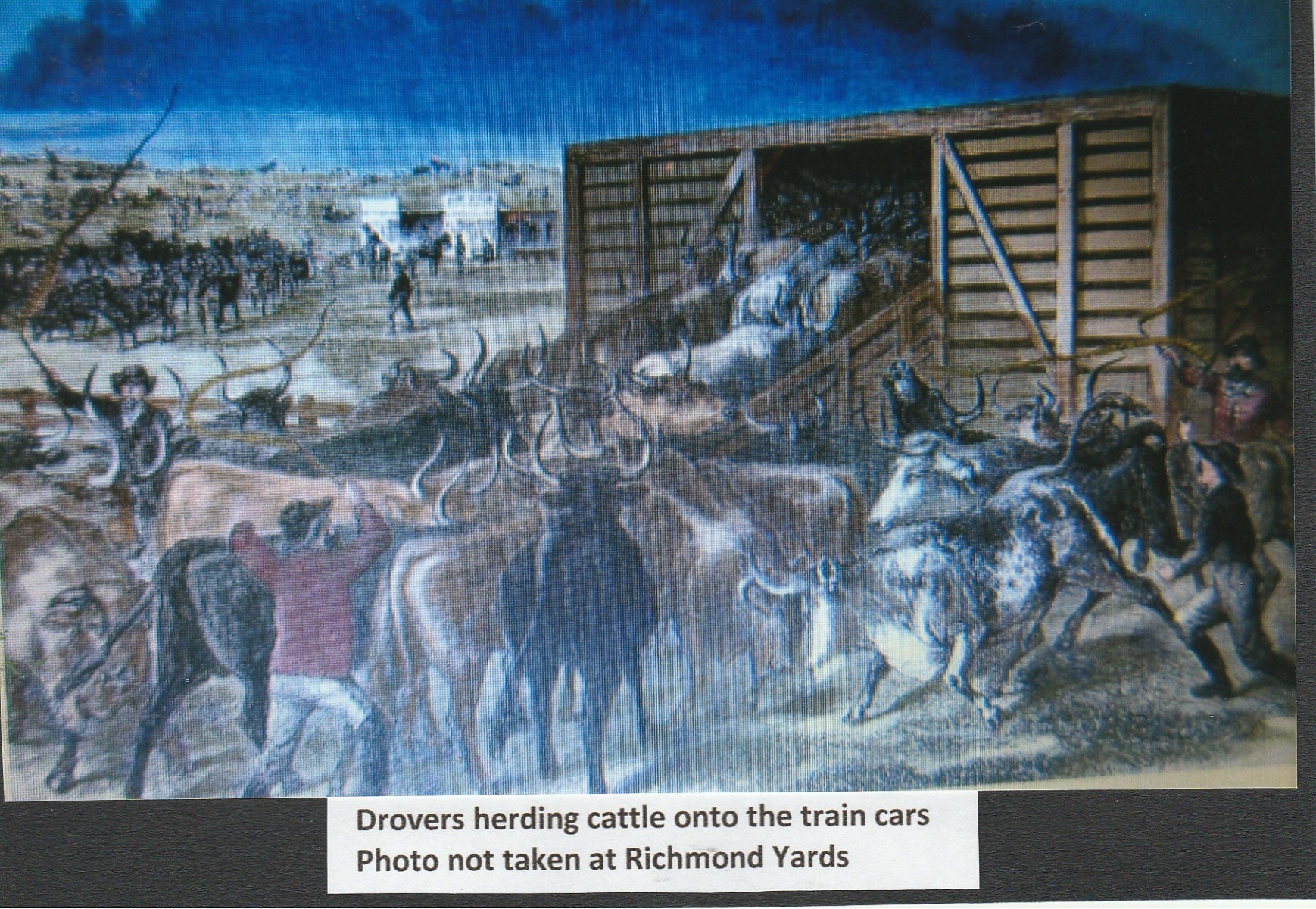 Hundreds of cattle arrived at Richmond by rail, herded into the cattle yards, branded and then driven onto ships waiting at Pier 9, to take them to England and elsewhere.