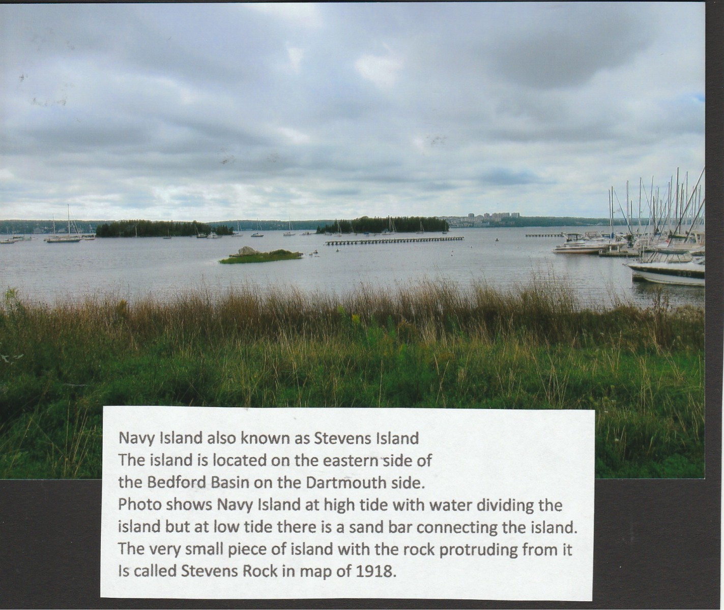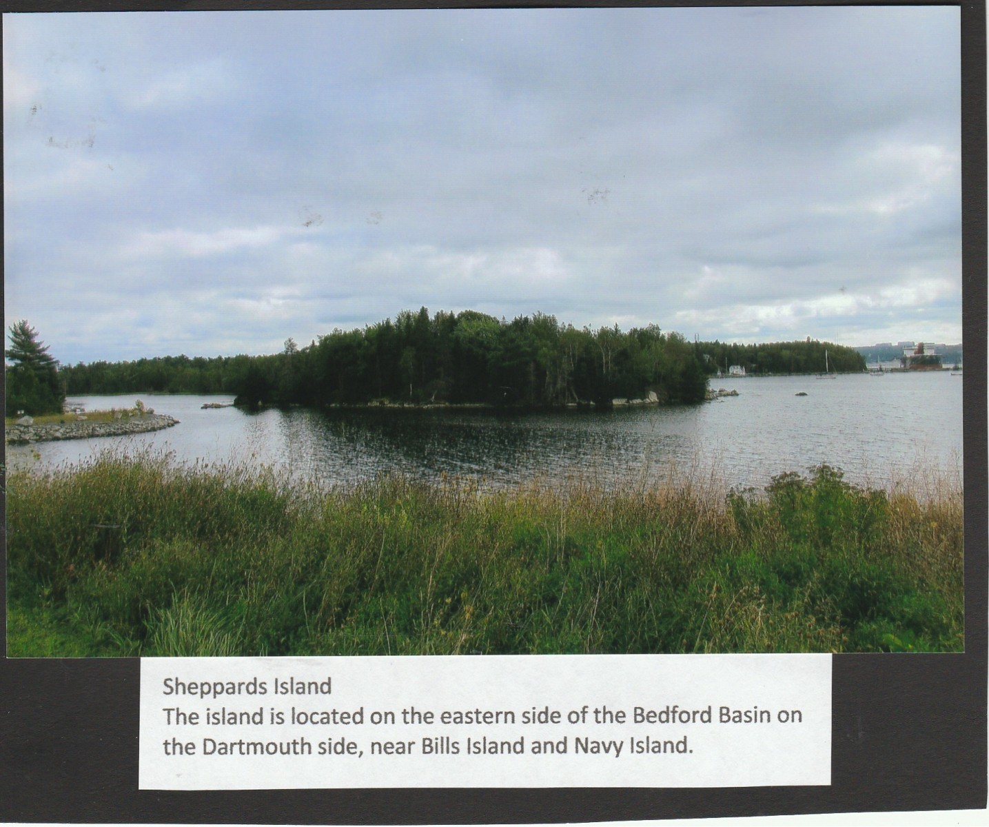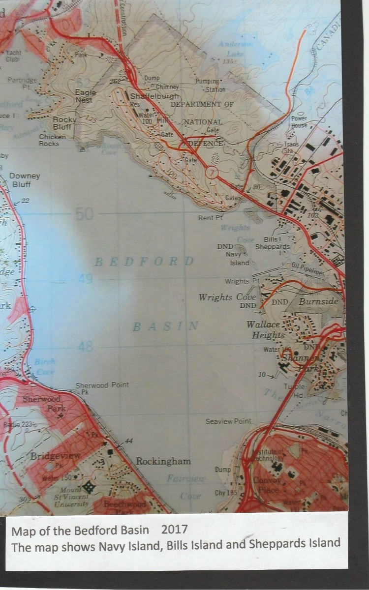 The island is a very small piece of land located on the Dartmouth side of Bedford Basin near Navy Island and the Dartmouth Yacht Club. Today the island appears to just house a few trees and rocks, but I’m sure it is home to many different kinds of birds.