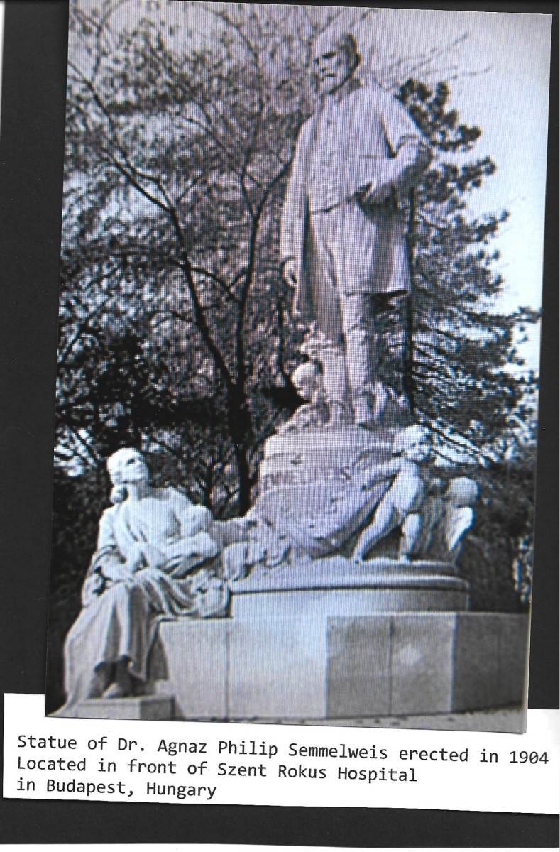 It was well into the late 1890s before doctors realized the importance of Semmelweis’s discovery and finally implemented his procedure into their everyday practice; he is considered a pioneer of antiseptic procedures. Today he is honoured all around the world in so many ways. In 1906 a statue of him was unveiled in Budapest, Hungary, and a University was named after him there as well. The Semmelweis Museum of Medical History is located in the house where he was born in Hungary. A hospital in Vienna, Austria, the Semmelweis Klinik (clinic) which is a hospital for women and two other hospitals in Hungry, the Semmelweis Hospital in Miskoic and the Semmelweis Hospital in Kiskunhalas all carry his name. A coin and a postage stamp were produced with his picture on it and a bust in his image was unveiled at the Queen Mary University of London in 2023.