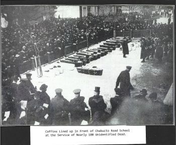 Armand Schreiter a Kitchener Mortician, on hearing of the Explosion volunteered to help care for the bodies of the numerous deceased. When he arrived at the Chebucto School basement there were already 300 bodies lined up and everything was in quite a disorganized state, although the soldiers were doing
