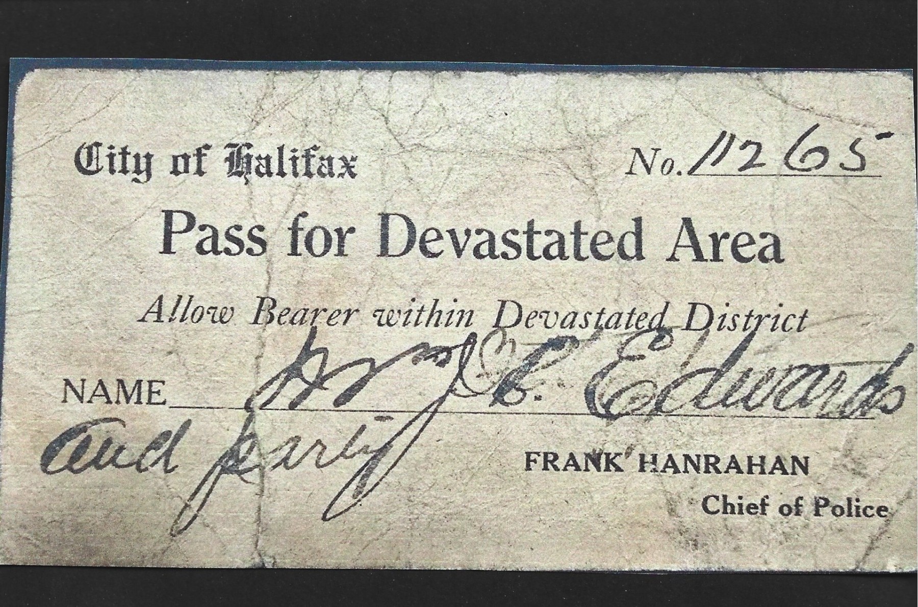 His difficulties were many, but Conductor Gillespie had also his problem. He ‘filled the train full’, it was the obvious thing to do, but it only increased his difficulties. Then what to do with them? Here was a trainload of broken, bleeding humanity standing on the track on the outskirts of a stricken, burning city and it was impossible to obtain orders where to go or what disposal was to be made of the unexpected passengers. Gillespie had to decide the matter for himself, he sent the engine to the Roundhouse for a fresh supply of coal and water and then ran the train back as far as Rockingham because, as he says, he did not know where else to go. There he received the necessary authorization to return to Truro. The train left Rockingham at 1:27 p.m. and reached its destination at five minutes to four. Conductor Gillespie had proved equal to the responsibility so suddenly thrown upon him. Perhaps his chief satisfaction lay in the knowledge that he saved one women’s life, by bandaging her wounds so as to stop the hemorrhage. The doctor told him so on examining the