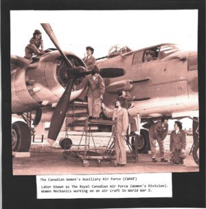 The motto of the women’s service was “We Serve That Men May Fly; We Serve That Men May Fight; We Are the Women Behind the Men Behind the Guns!” In all, over 1,300 Canadian Airwomen 2,000 members of the CWAC and 503 Canadian Wrens served in the United Kingdom.